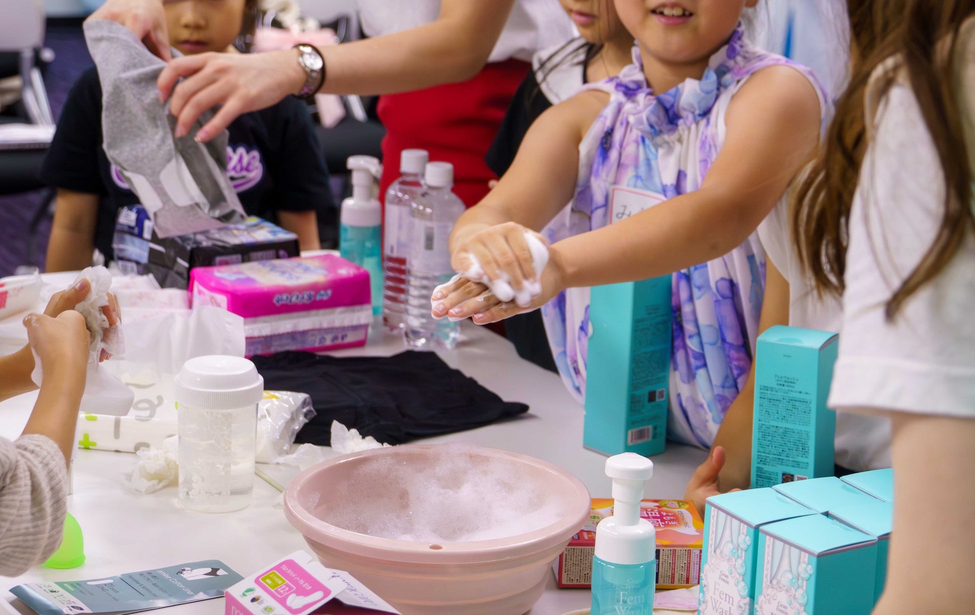 デリケートゾーン用のソープを初体験。ふわふわで気持ちいい!という声が。ナプキンやショーツの展示も。