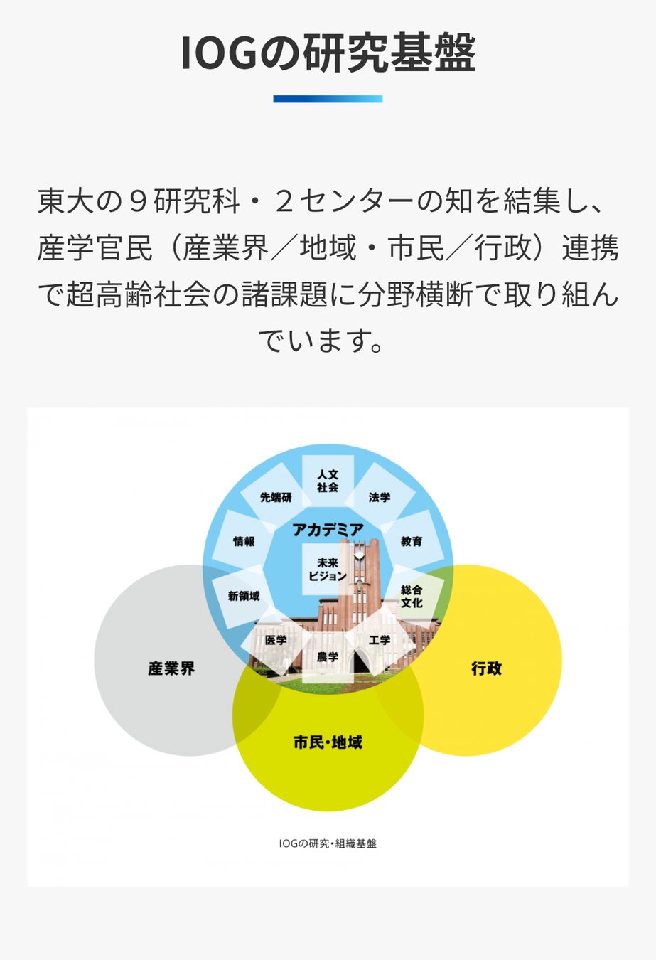 日本は世界でも有数の高齢化社会を迎えています。この課題に対し、東京大学IOGは、フレイル予防を中核とした総合的な対策を提唱しています。