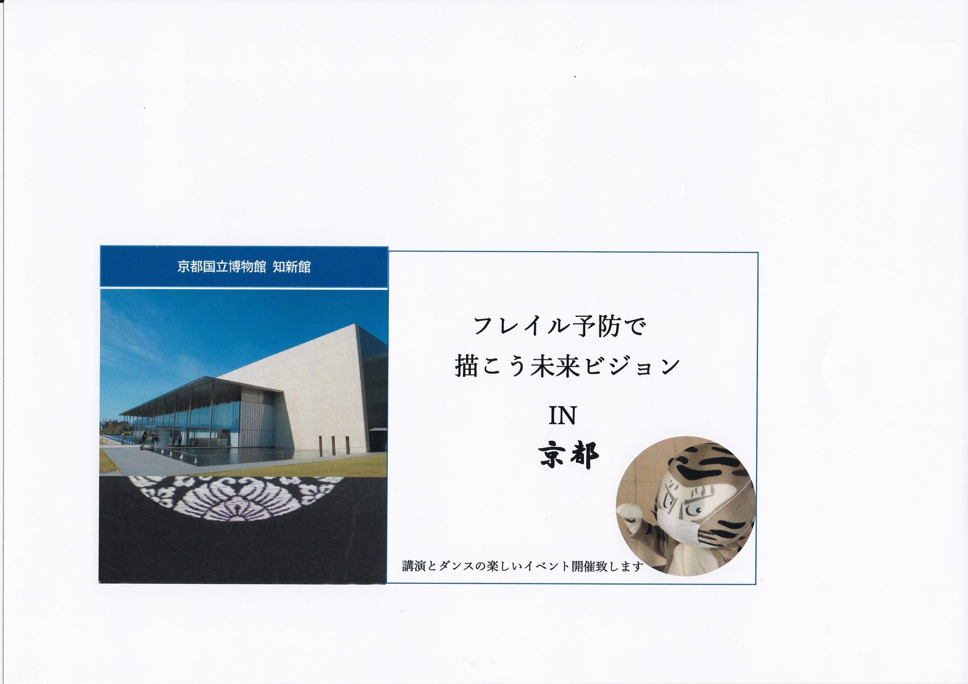 そこで弊社では、京都文教中・高校にお願いし、京都国立博物館にてフレイル予防ダンスを披露していただきました。動画を仄見(イベント)からご覧いただき、体を動かす楽しさを感じていただけたら嬉しく存じます。なお、ダンスの衣装には、平安装束の生地を使用した小物をあしらいました。このことで、日本の伝統文化の素晴らしさに興味を持ち、再認識していただきたいという願いを込めております。