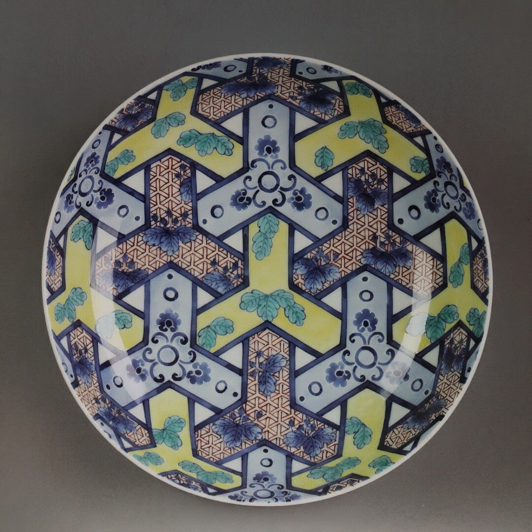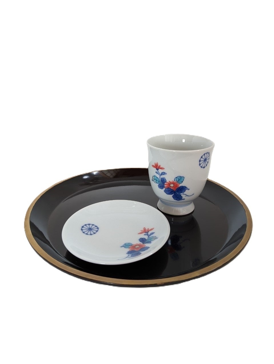 黄綬褒章受章、色鍋島の菊紋章入り器など