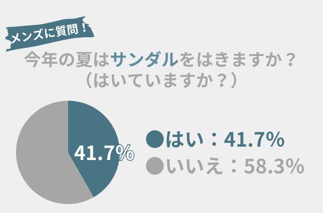 ちなみに女性にも同じ質問をしたところ、64%の方がサンダルを着用予定であることがわかりました。男女ともに、サンダルを使用して、夏のファッションを楽しむようです。
