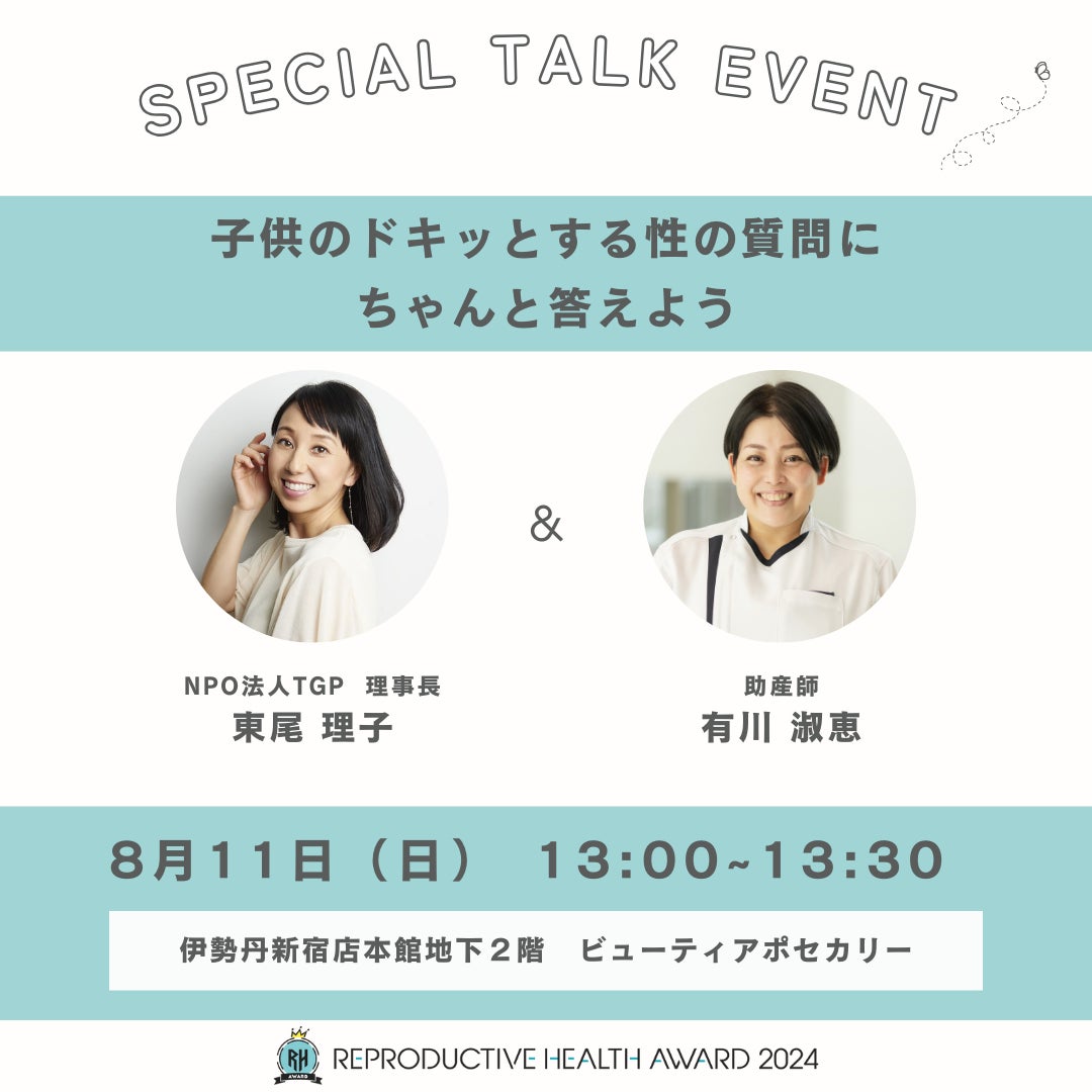 POP UP SHOPでは、アワード受賞商品を中心に、「性」や「生」に関わる想いのつまった製品を取り揃えてご紹介いたします。また、会期中はリプロダクティブヘルスに関わるトークショーやカウンセリングも実施いたします。この機会に是非、「性」や「生」について考えてみてはいかがでしょうか。