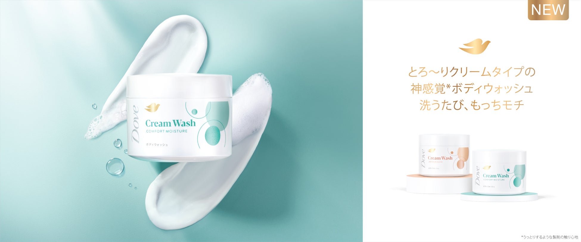近年のボディケア市場では、お風呂の中で日々のルーティンにスペシャルケアを取り入れる「プラス1ケア」アイテムの人気が高まっています。そんな中、うるおいイメージ第1位のダヴ※4から、ブランド史上初となるクリームタイプの”神感覚”ボディウォッシュ「ダヴ クリームボディウォッシュ」が誕生しました。とろ~りとしたクリーム状のテクスチャが特長のボディウォッシュは、身体の汚れを落とすだけでなく、全身にのばして2~3分おくことでボディパックとしてもお使いいただけます。自分へのご褒美アイテムとしてバスタイムに取り入れるのはもちろん、ボディケアの時間が取れない日にも普段のボディウォッシュと置き換えることでしっとりとした肌へと導きます。ボディパックもできる、リッチなクリームタイプの「ダヴ クリームボディウォッシュ」で、極上のバスタイムを体験してみてください。