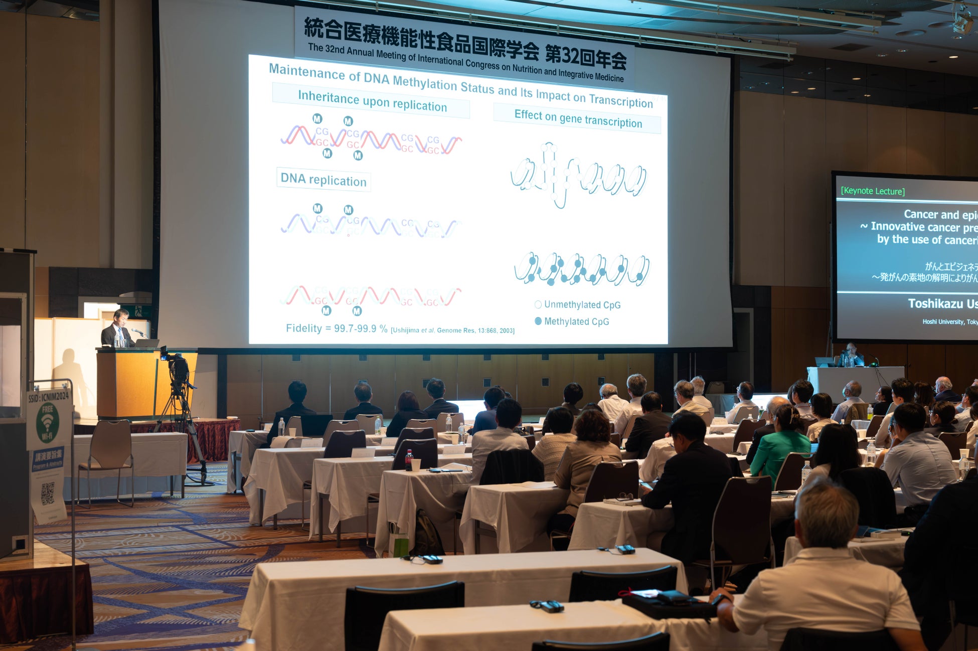 統合医療機能性食品国際学会年会は今回で第32回目を迎えました。近年、基礎研究の成果報告には、機能性食品によるエピジェネティクス制御機構の解明や、最新のがん治療法との併用効果の可能性検証など、最先端の科学的知見に基づく有望な報告ものが多く、有望な報告もあり、臨床での検証とその後の応用が期待されます。