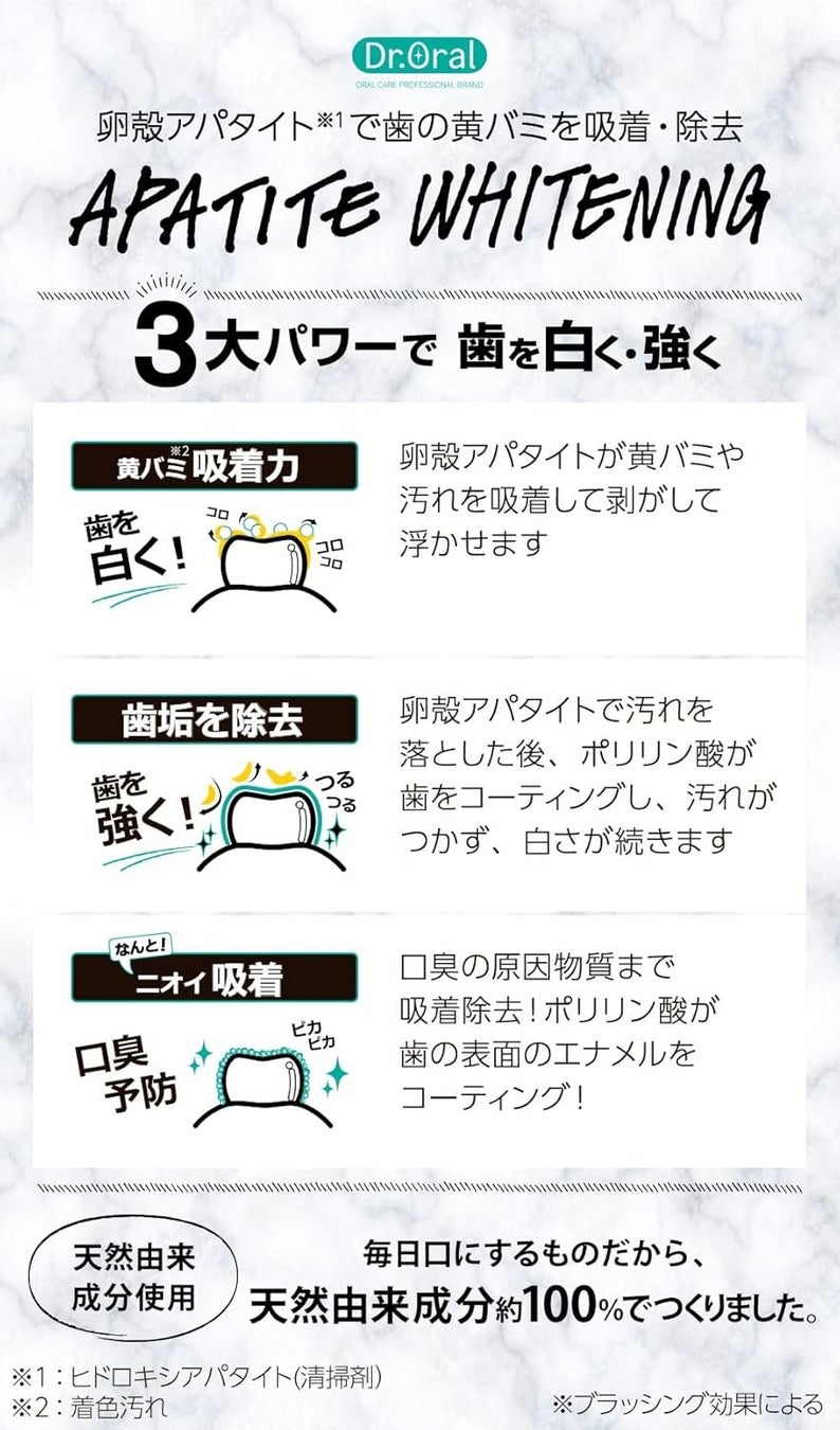 『ドクターオーラル ホワイトニングパウダー』は、歯に負担をかけることなく汚れ落ちを実感できる“業界初”『卵殻アパタイト※1』を高配合した美白ケアの粉ハミガキ。
