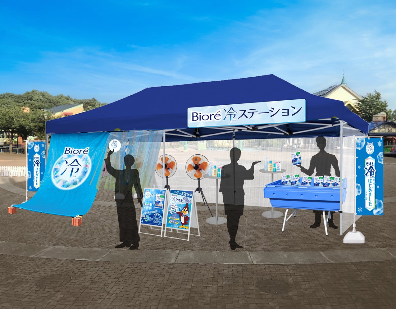 ブースでは、『ビオレ 冷タオル』を来場者に配布*² するほか、暑さが気になった瞬間に、いつでもどこでもシュッとするだけで肌温度を10℃下げる*³ 冷却ミスト『ビオレ 冷(ひや)ハンディミスト』や、「湿度・温度ストレス*⁴」に着目した汗ふきシート『ビオレZero シート』、ミストタイプの日やけ止め『ビオレUV アクアリッチ アクアプロテクトミスト(通称:瞬感ミストUV)』などのビオレ商品を試用体験できるコーナーを設け、真夏の「那須ハイランドパーク」でのレジャー体験をひんやり・快適にサポートします。