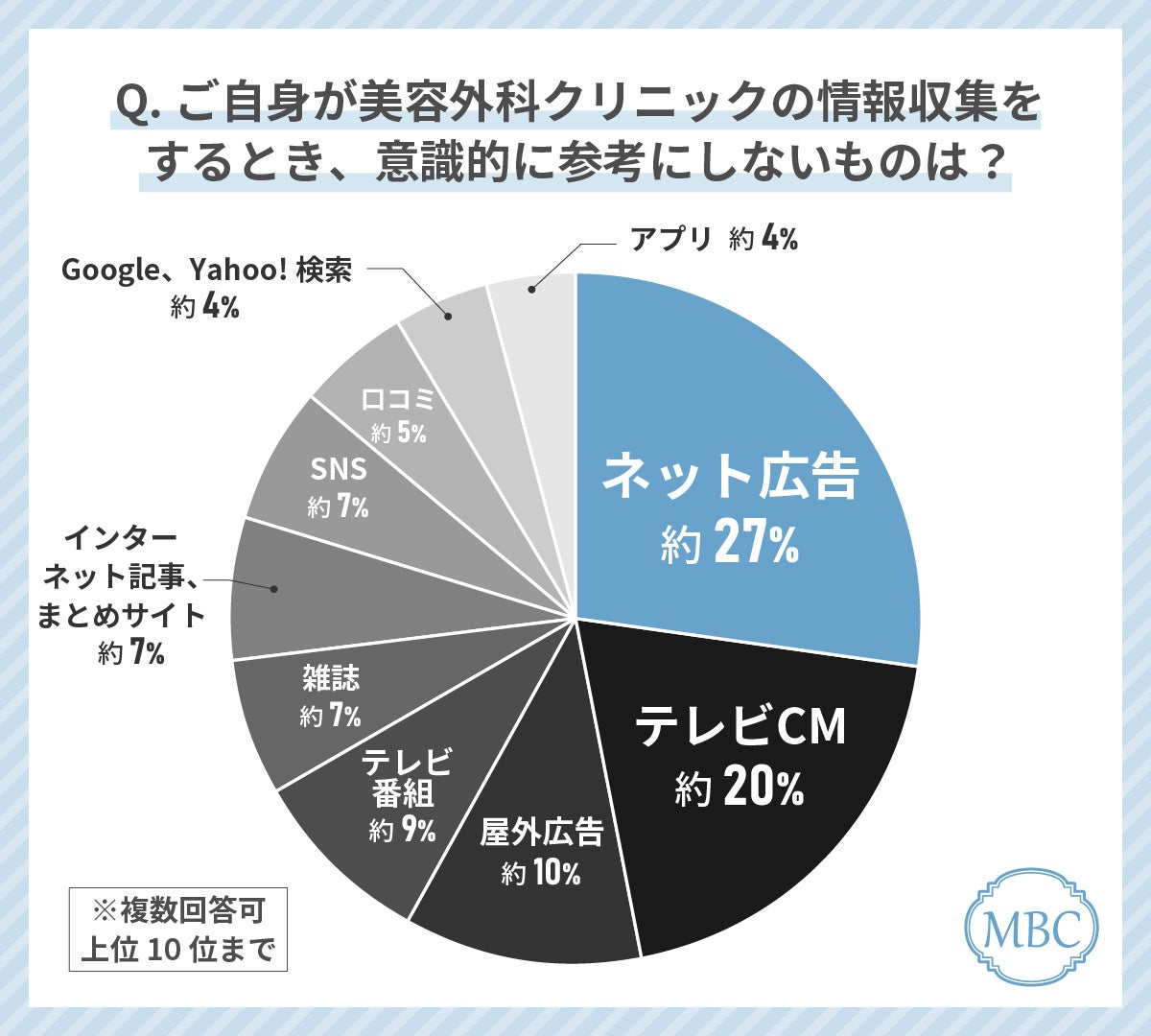 「ご自身が美容外科クリニックの情報収集をするときに意識的に参考にしないものはどれですか(複数選択可)」とアンケート調査した結果、