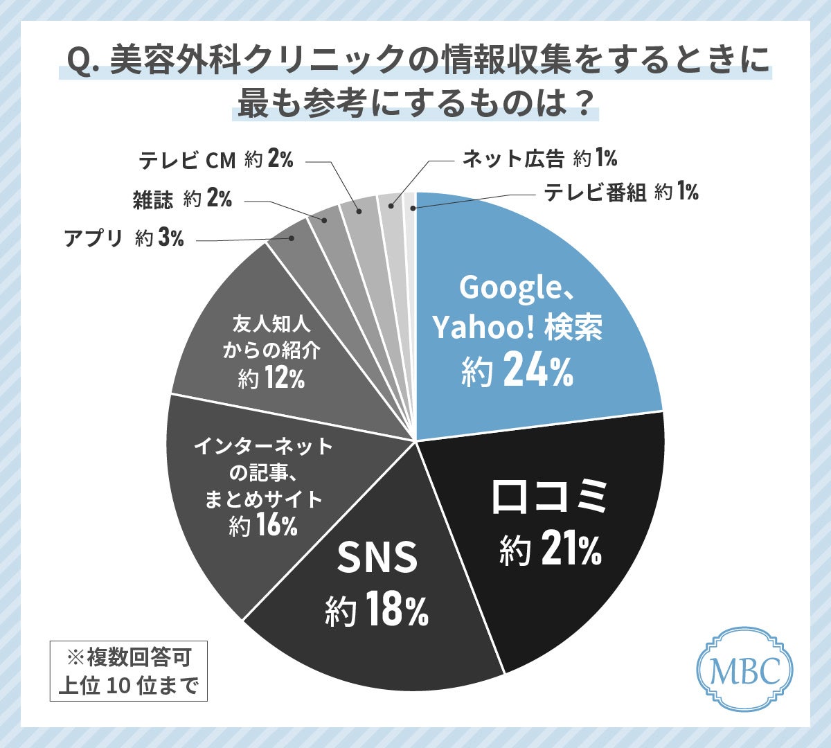 「ご自身が美容外科クリニックの情報収集をするときに最も参考にするものは何ですか(複数選択可)」とアンケート調査した結果、