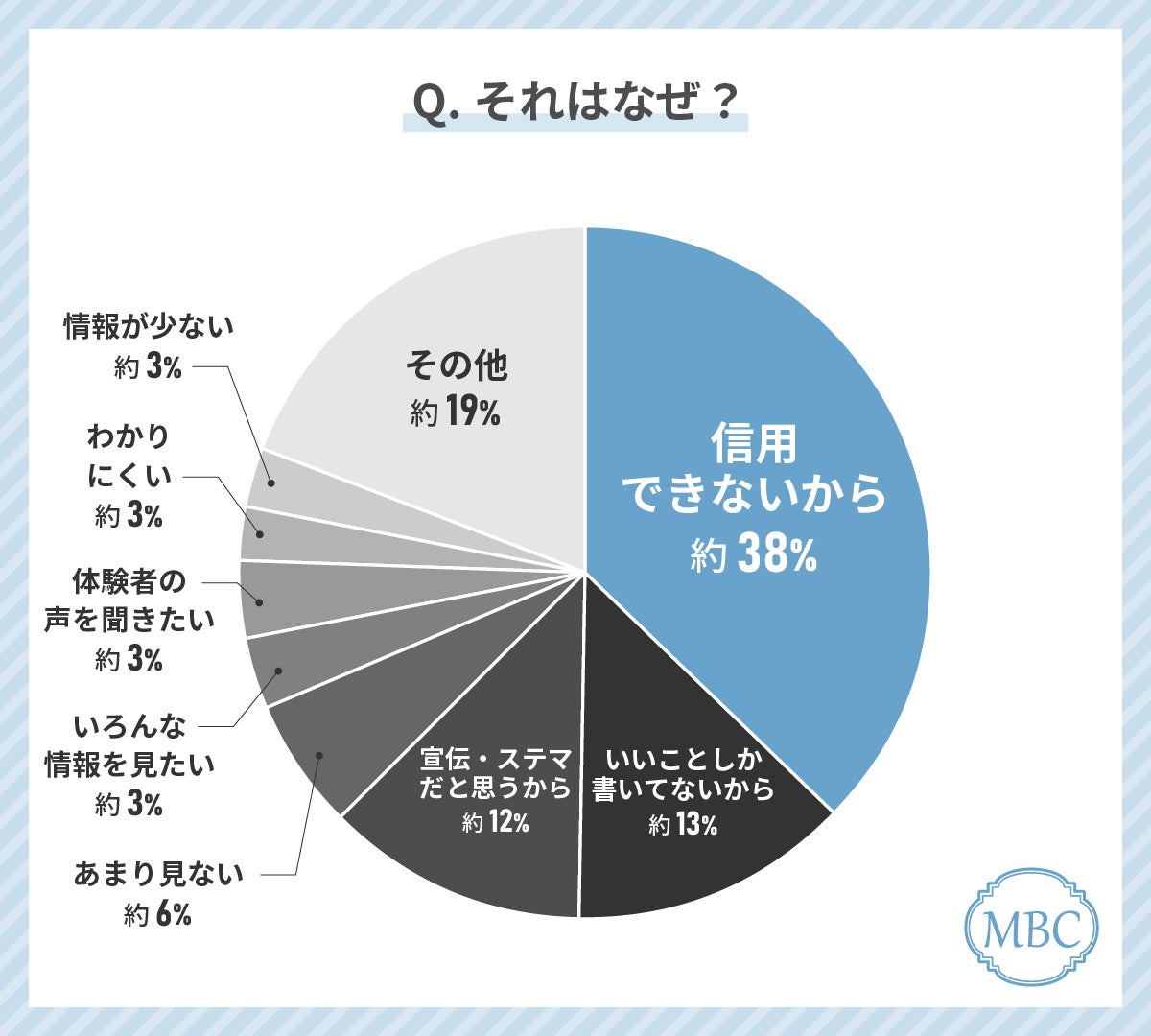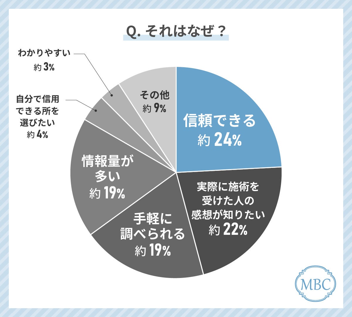 理由としては、手軽に情報収集ができること、実際に施術を受けた方の体験談・口コミの情報が信頼感があるようです。