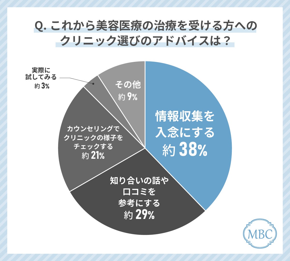 「これから美容医療の治療を受ける方へのクリニックの選び方のアドバイスをお願いします。」とアンケート調査した結果、