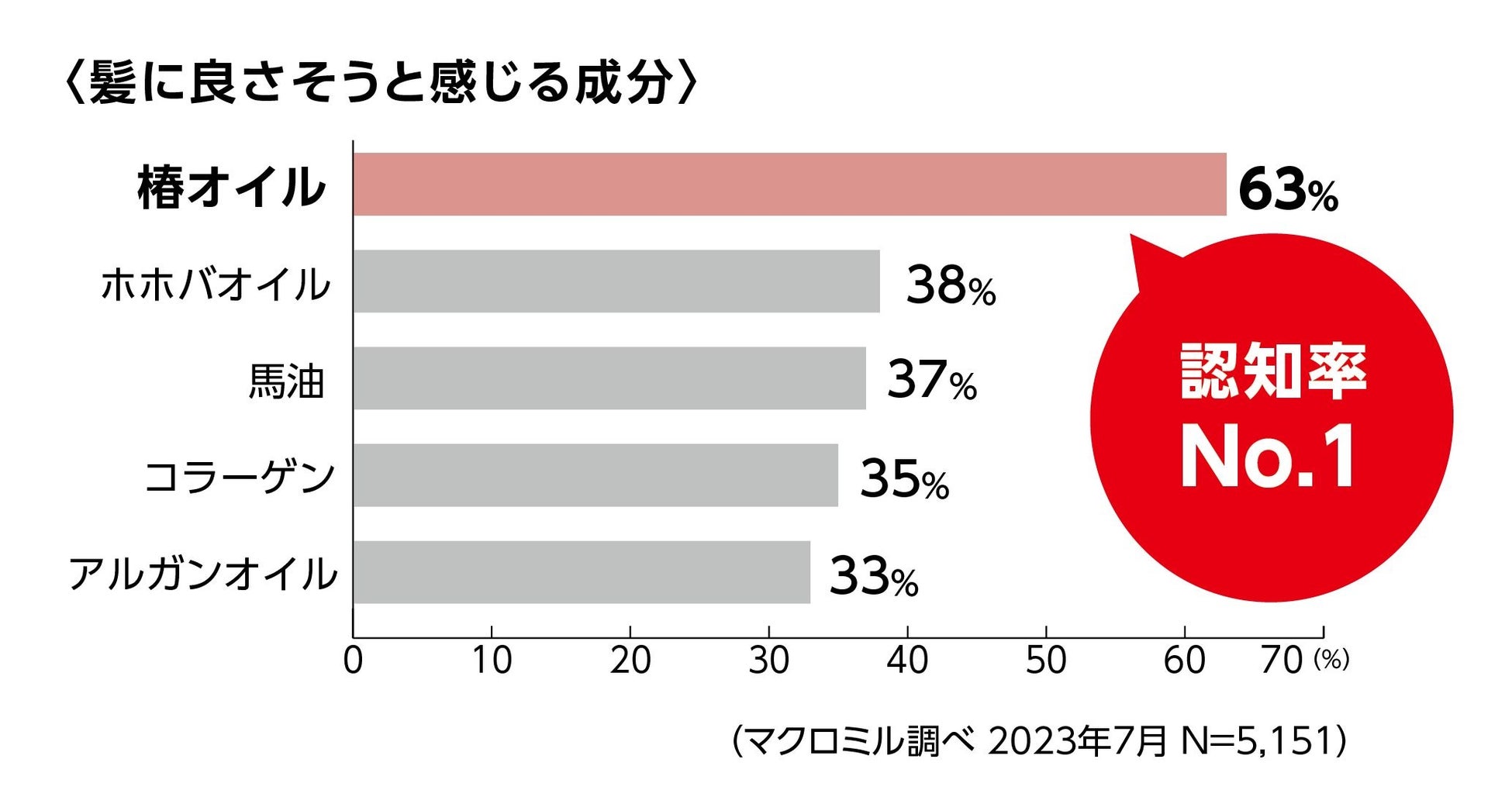 近年スキンケアのみならずヘアケアにおいても配合成分や、その効果に対しての生活者の知識やニーズが高まりを見せる中、椿オイル※2は髪に良さそうだと感じる成分としての認知率は群を抜いてNo.1※7に選ばれている背景のもと、さらなる高みを目指して開発したのが“椿オイルフォース※3”。毛髪を構成するわずか1~4%の脂質に着目し、今までは椿オイル※2の「補給」にとどまっていたケアを、髪の脂質組成を詳細に研究し、美しい髪の要となる脂質構造に重要な脂質成分を掛け合わせることにより、うるおいを「抱え込める」状態へと導きます。
