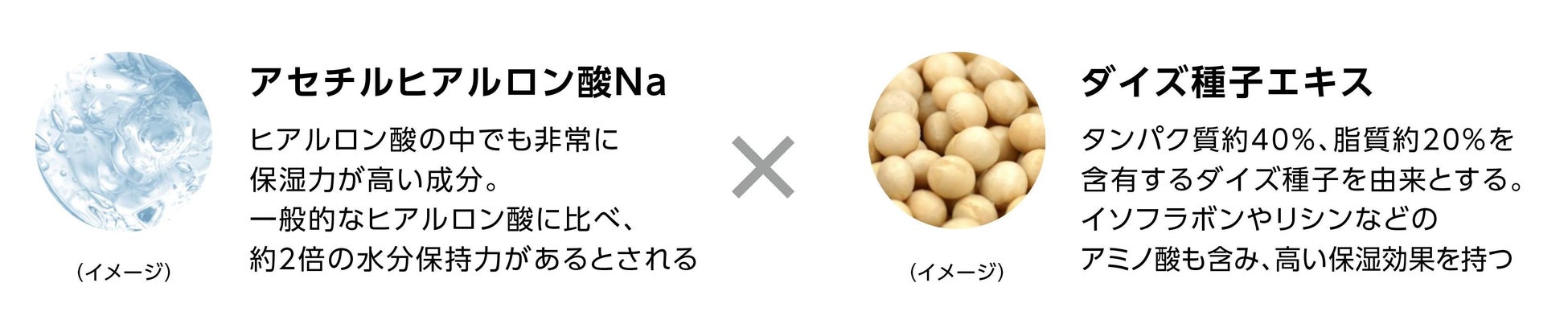 水分保持力の高い「アセチルヒアルロン酸Na」にタンパク質を多く含む「ダイズ種子を由来とするエキス」を加えることで、毛髪の保水力を高めて水分蒸散を抑制。毛髪内にうるおいを保持。水分が蒸散しやすい毛先までしっとりまとまる髪へ