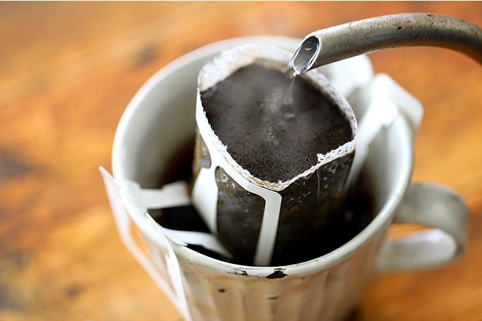 竹炭パウダーは非常に細かい15ミクロン(0.015ミリ)の微粉末で、無味無臭ながらコーヒーの味わいを引き立てます。ドリップバッグ式なので、ドリッパーやペーパーフィルターも不要。いつでも淹れたてのコーヒーを楽しめるのが特徴です。