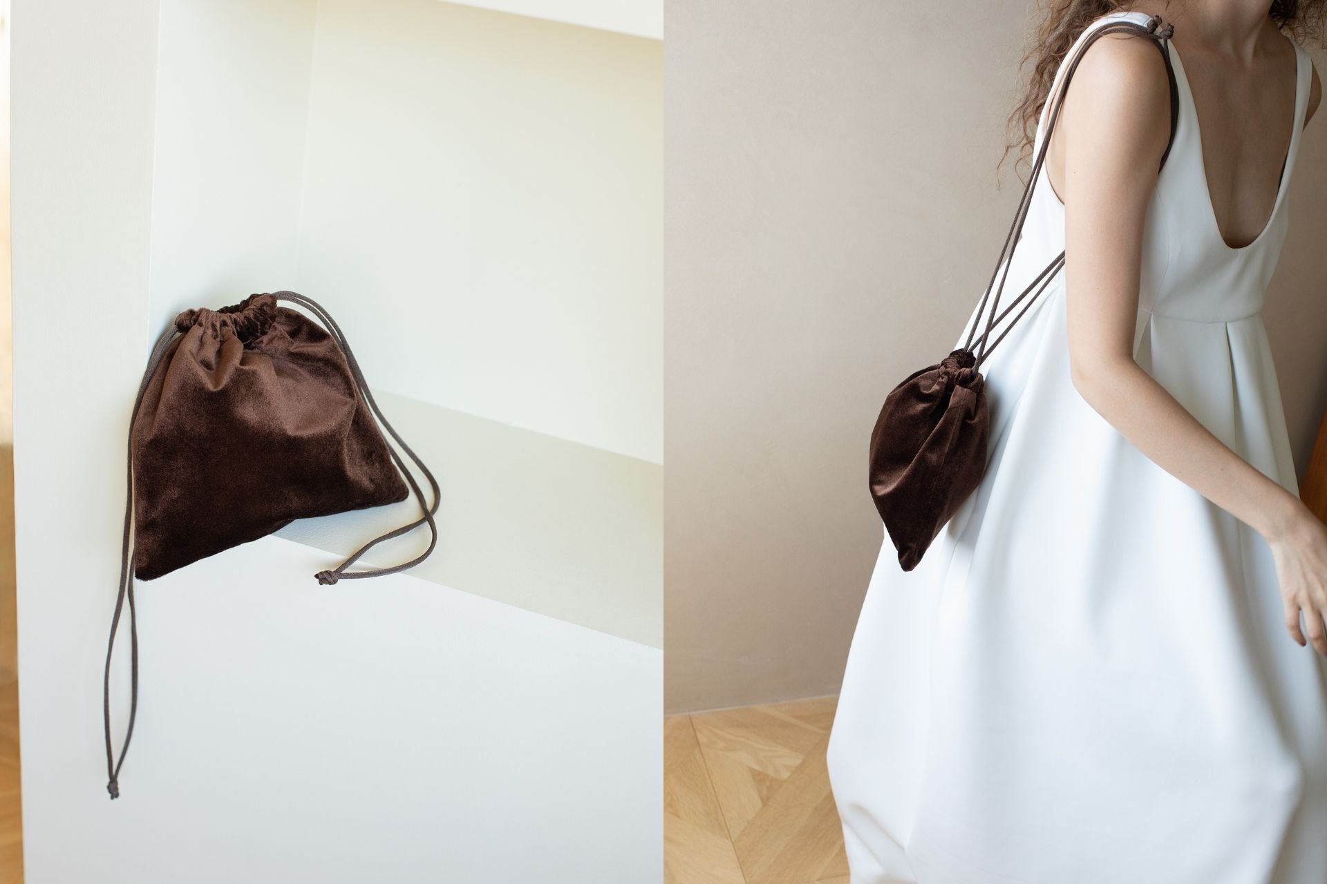 コスメポーチとしてもショルダーバッグとしても使えるマルチポーチ。手触りの良い柔らかなドレープが特徴のベロア生地を使用。繊細で滑らかな光沢感を出すことで、高級感のある質感に仕上げました。アイシャドウパレット「rihka feelings palette」を持ち運びやすいように、内側にポケットも付いています。