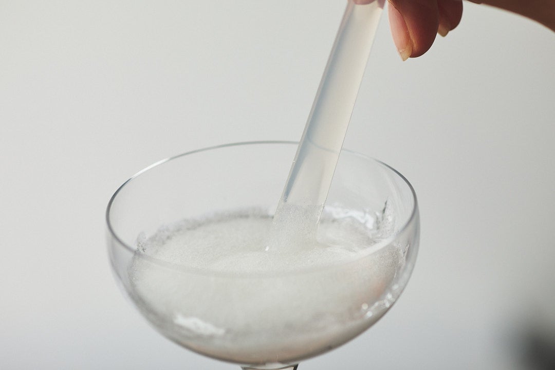 化学的に宇宙一小さな元素である水素を、新鮮かつ安定して肌に届けられるようジェルとパウダーを混ぜ合わせる2剤式を採用。