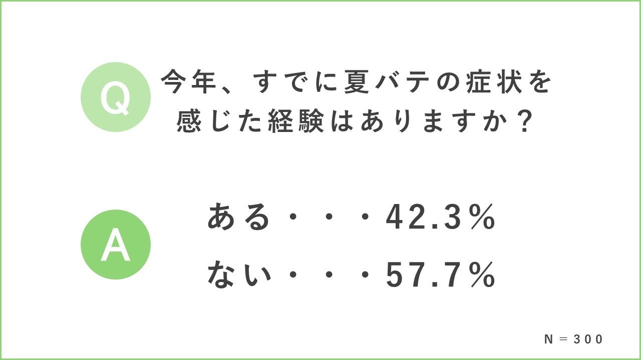 今年はラニーニャ現象により史上最暑!?女性の約2人に1人が今年、夏バテを経験