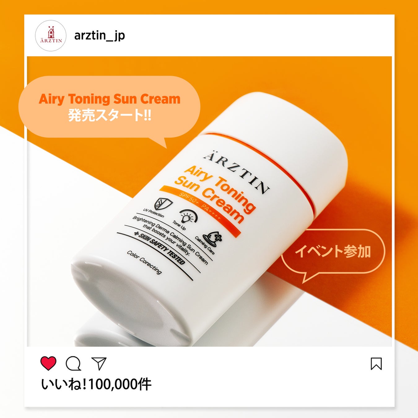 エルツティンの公式SNSインスタグラムでは新発売イベントでフォローとコメントで参加し、エルツティン「エアリートーニングサンクリーム」を5名へプレゼントするイベントを行います。夏の真ん中で軽く使えるサンクリームを探してましたら「エアリートーニングサンクリーム」をお使ってみて下さい。
