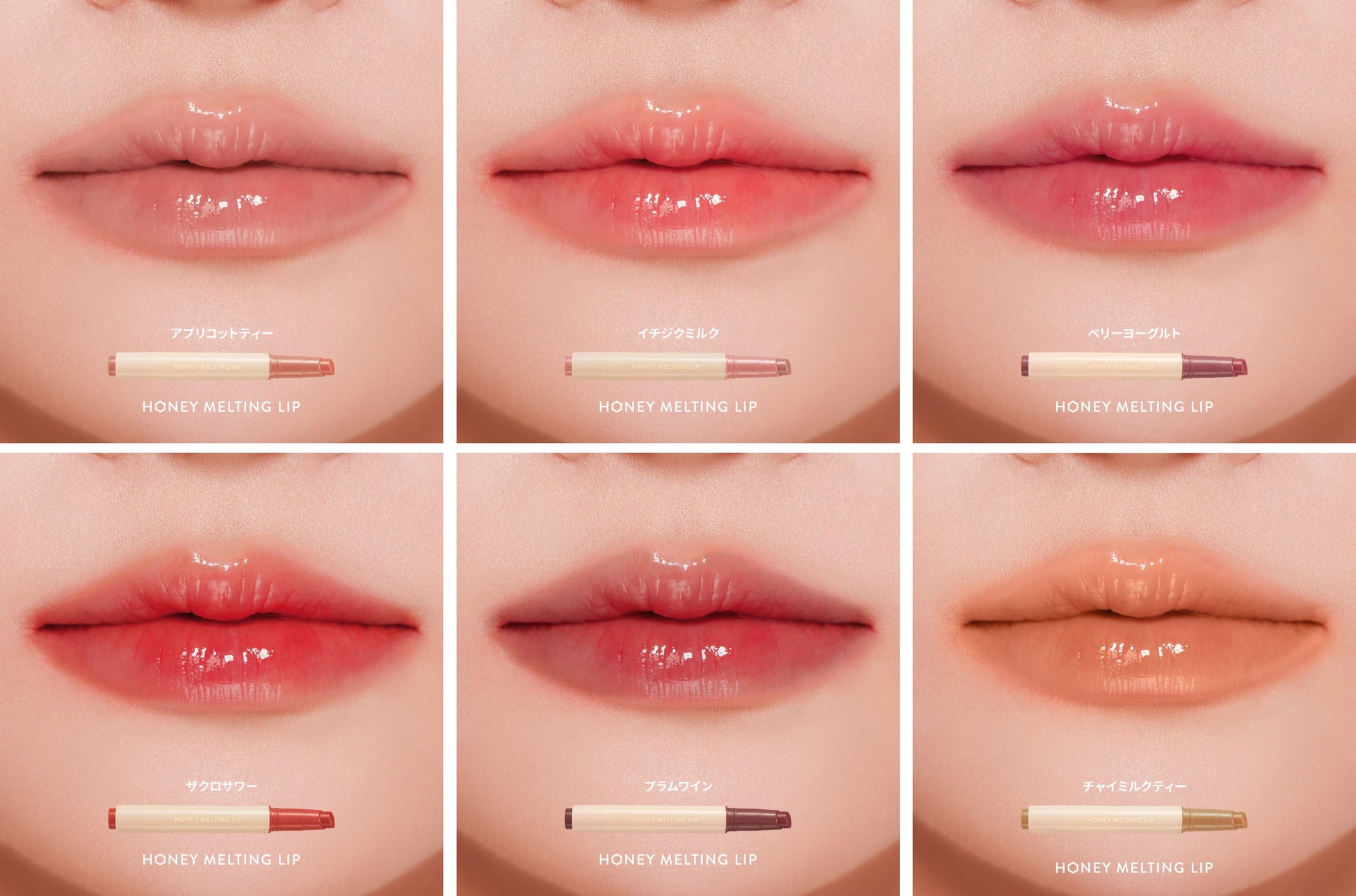 2024年8月現在、日本国内ではアプリコットティー、イチジクミルク、ベリーヨーグルト、ザクロサワー、プラムワイン、チャイミルクティーの6色を展開中。「#うさぎ舌リップ」として話題になったイチジクミルクや日本限定色でY2Kな雰囲気を演出できるチャイミルクティーなど多様なラインナップとなっており、今後も順次新色を追加販売予定です。