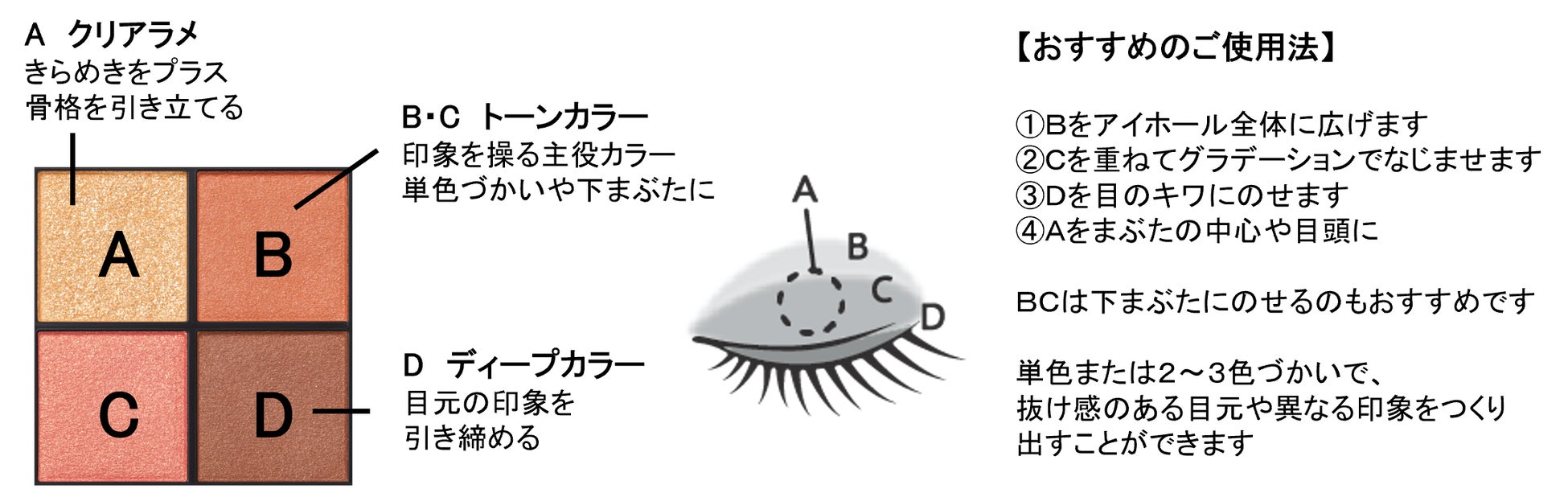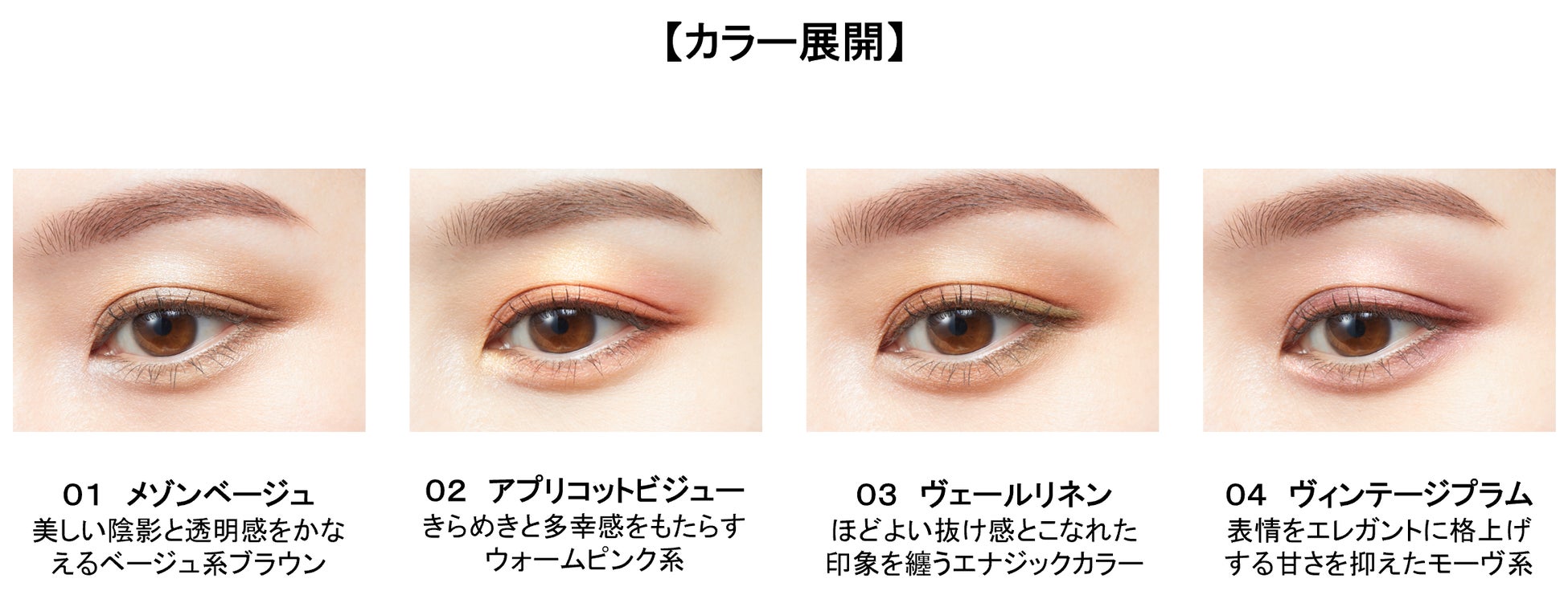 質感の異なるクリアラメ、トーンカラー、ディープカラーの4色で、立体的な目元を演出。