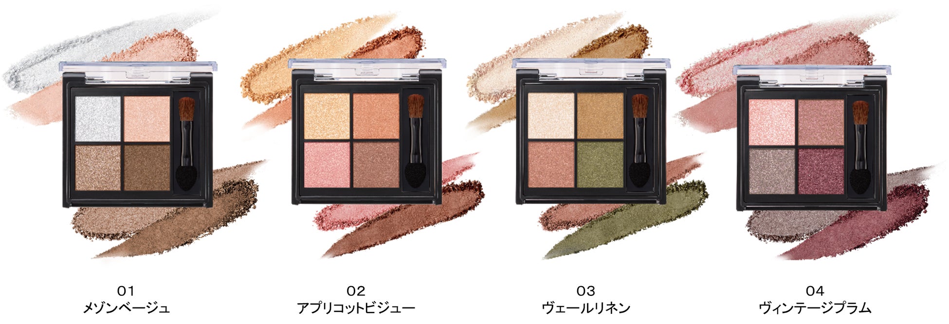 しっとりなめらかなテクスチャーと重ねてもくすみにくいクリアな発色で、繊細&奥行きのある繊細グラデが完成する4色アイシャドウ「スタイリングアイパレット」が新登場。