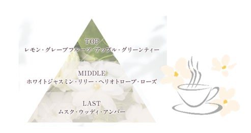 レモンやグレープフルーツのさわやかなシトラスノートにジャスミンやリリーのやさしいフローラルノートを合わせた上質な香りが、あなたを至福のバスタイムへと誘います。