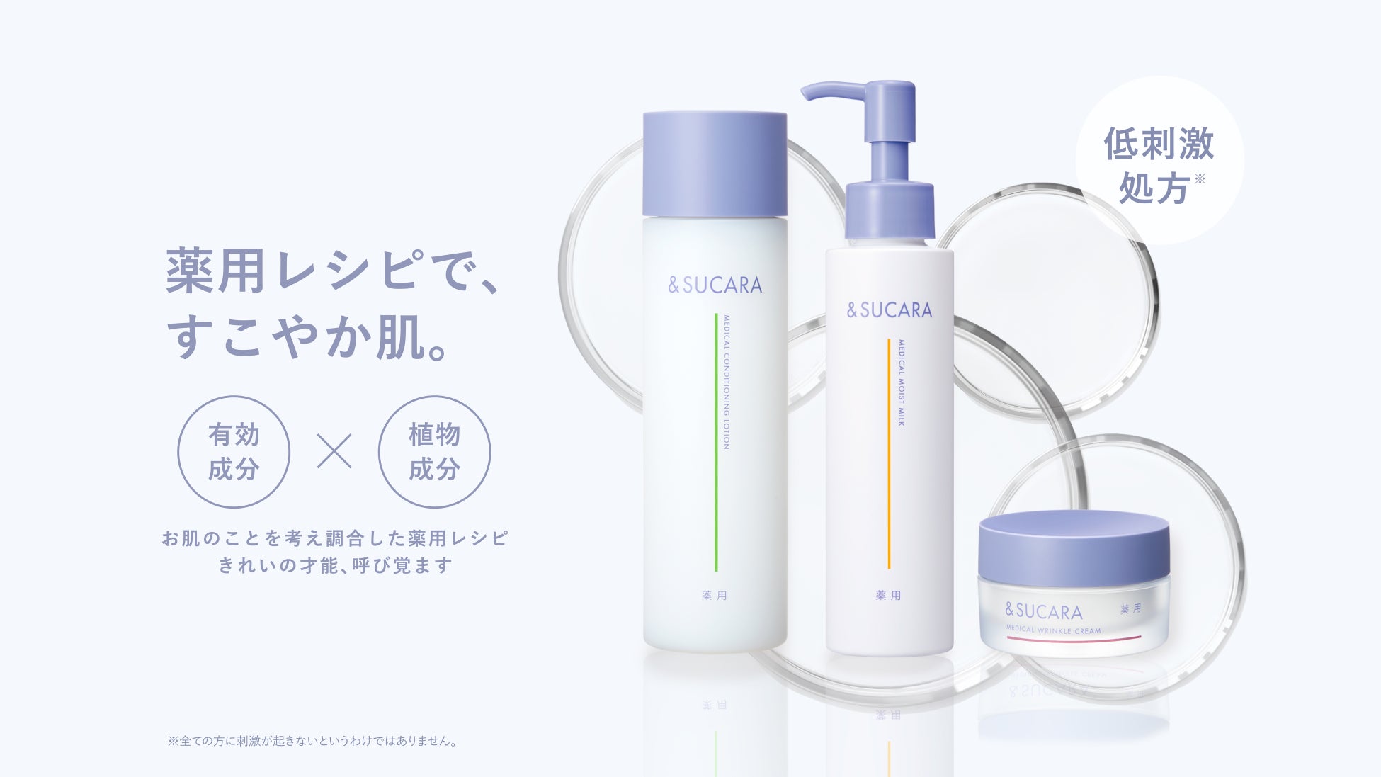 「&SUCARA」は、長年健康に寄り添ってきた日本薬健から、有効成分をまっすぐ届ける※薬用レシピで、「肌悩みを解放し、素肌をもっと好きになってほしい」という想いのもと生まれたブランドです。