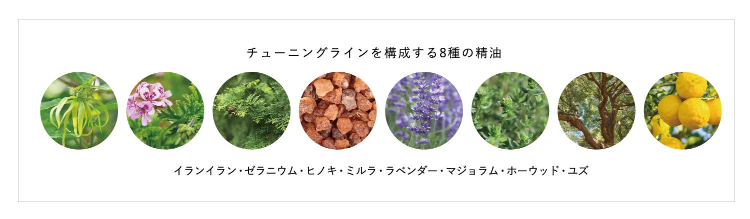 【チューニング ライン】アロマティックウッディの香りを楽しめるライン。スキンケアの時間に心地よさをもたらします。