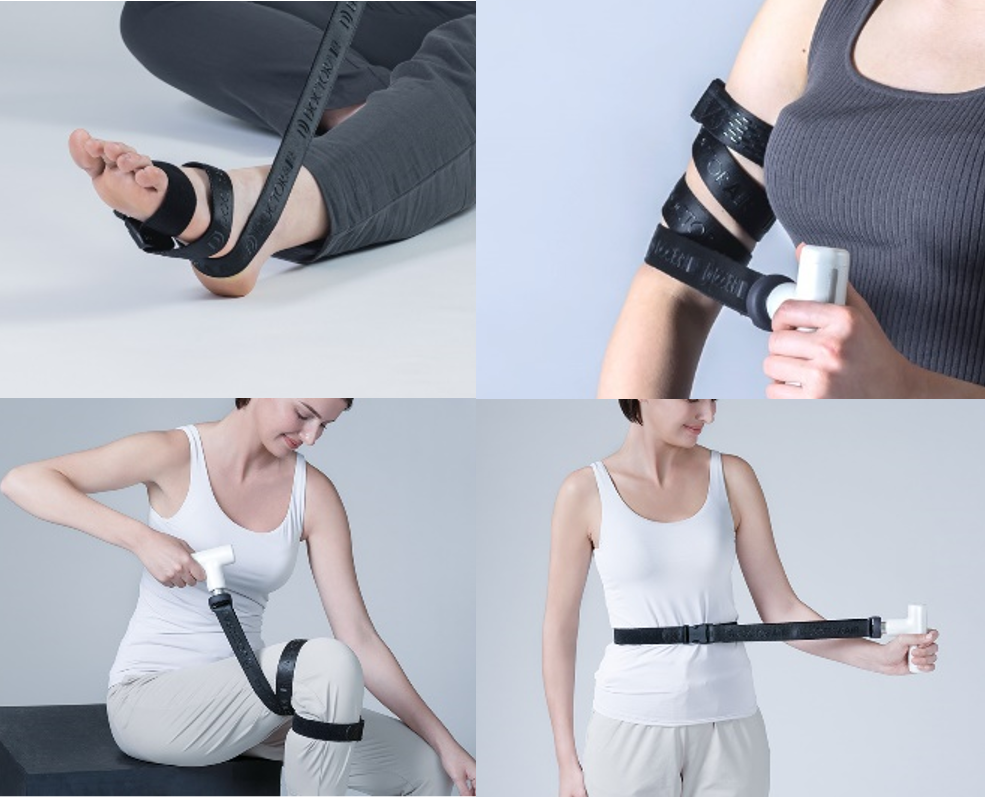【エクサガン ハイパー】のみではケアのしづらい背中や関節部といった部分にあてたり、巻きつけることで振動を伝えてアプローチができます。