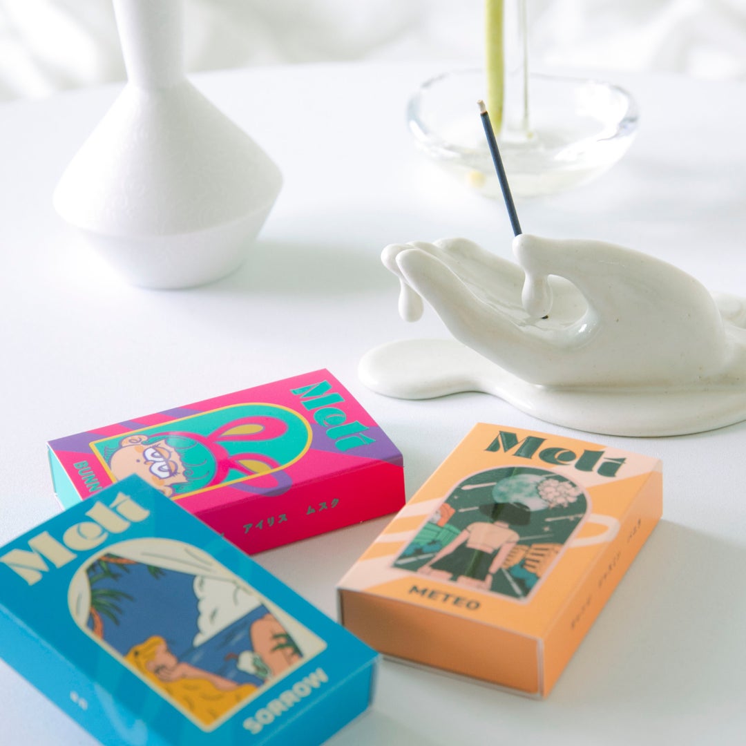 香を灯し、心を溶かすインセンスブランドです。溶けていく時間は艶やかで、儚い。 全身を包んでいたその陶酔感はいつのまにか消えてしまって、喧騒とした日常へと戻ってゆく。心とろける、Meltな時間。