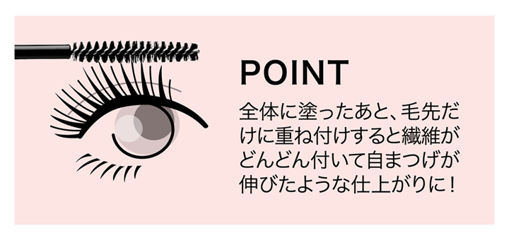 3、上からお手持ちのマスカラを重ねて仕上げてください。