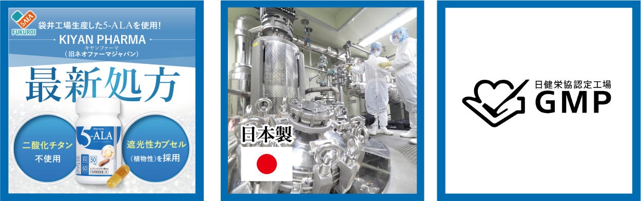 袋井工場で生産した5-ALAを100%使用