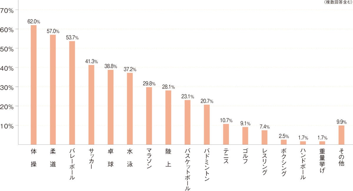 注目しているスポーツは1位:体操、2位:柔道、3位:バレーボールとオリンピックの開催前からメダルの期待がかかった競技や注目度の高い選手が出場する種目が高い数値となっています。前回は1位:柔道、2位:陸上、3位:野球・ソフトボールということで注目度が異なっています。シニアの世代には「日本のお家芸」と言われる体操や柔道の人気が引き続き根強いものと感じられます。