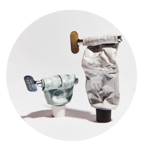 金属製チューブは、天然のミントフレーバーを損なわず、かつリサイクルも可能です。専用のチューブ巻きで巻き取りながら使用することで最後まで余すことなく使えます。