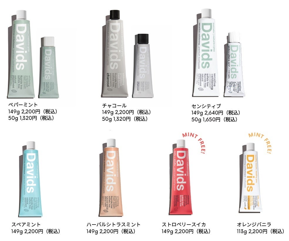 Davidsは100% 天然由来成分(食品グレード)でできており、研磨成分は石灰岩採掘された天然の炭酸カルシウムを、キシリトールは樺の木由来のものを採用しています。