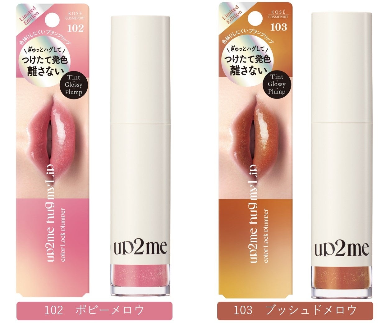 コーセーコスメポート株式会社(本社:東京都中央区、代表取締役社長:小林 孝雄)は、メイクアップブランド『アップトゥーミー』の、色移りしにくいジェル膜処方のプランプ※1リップカラー「ハグマイリップ」より、人気インフルエンサーのほのぴすさん・うじたまさんとコラボレーションをした限定品(1品目2品種、ノープリントプライス)を2024年8月21日より全国のマツモトキヨシグループ・ココカラファイングループ(一部店舗除く)、マツキヨココカラオンラインストア、およびMaison KOSÉ(ECサイト)にて発売します。
