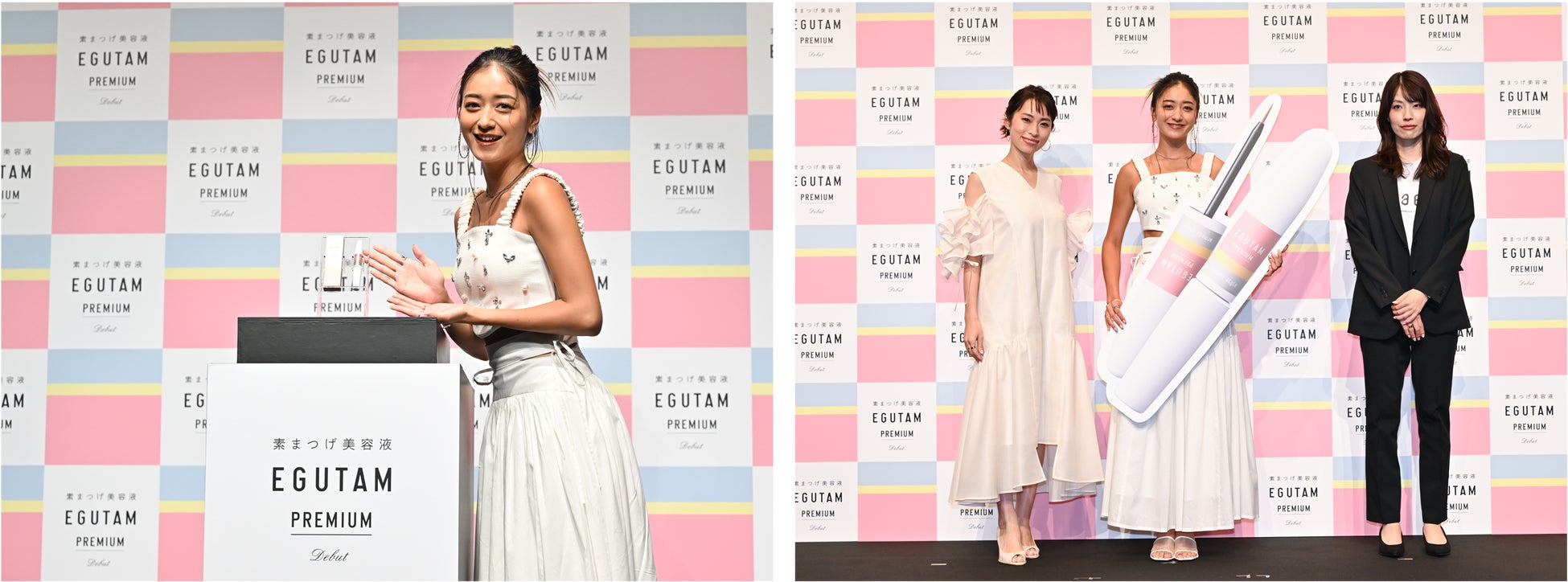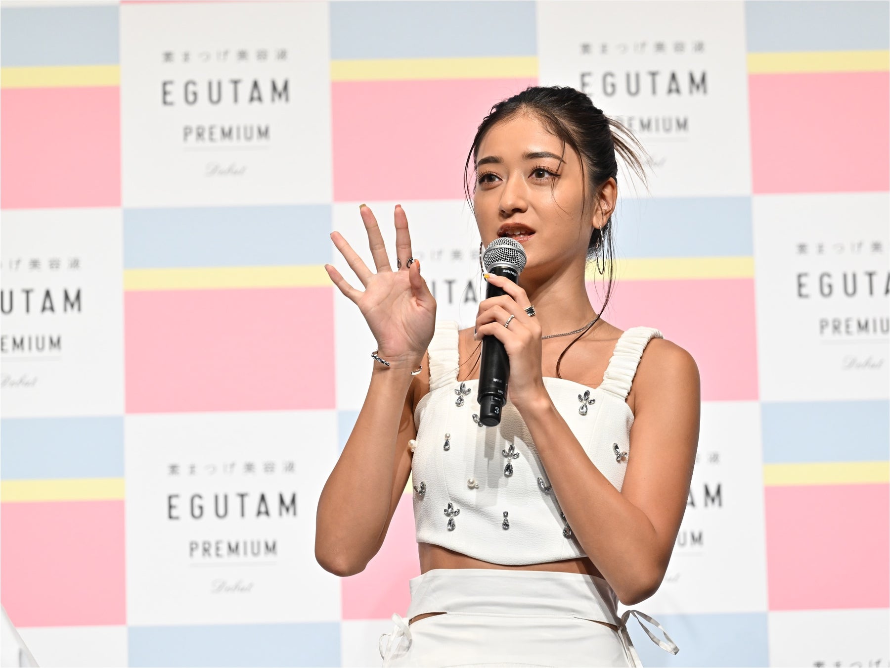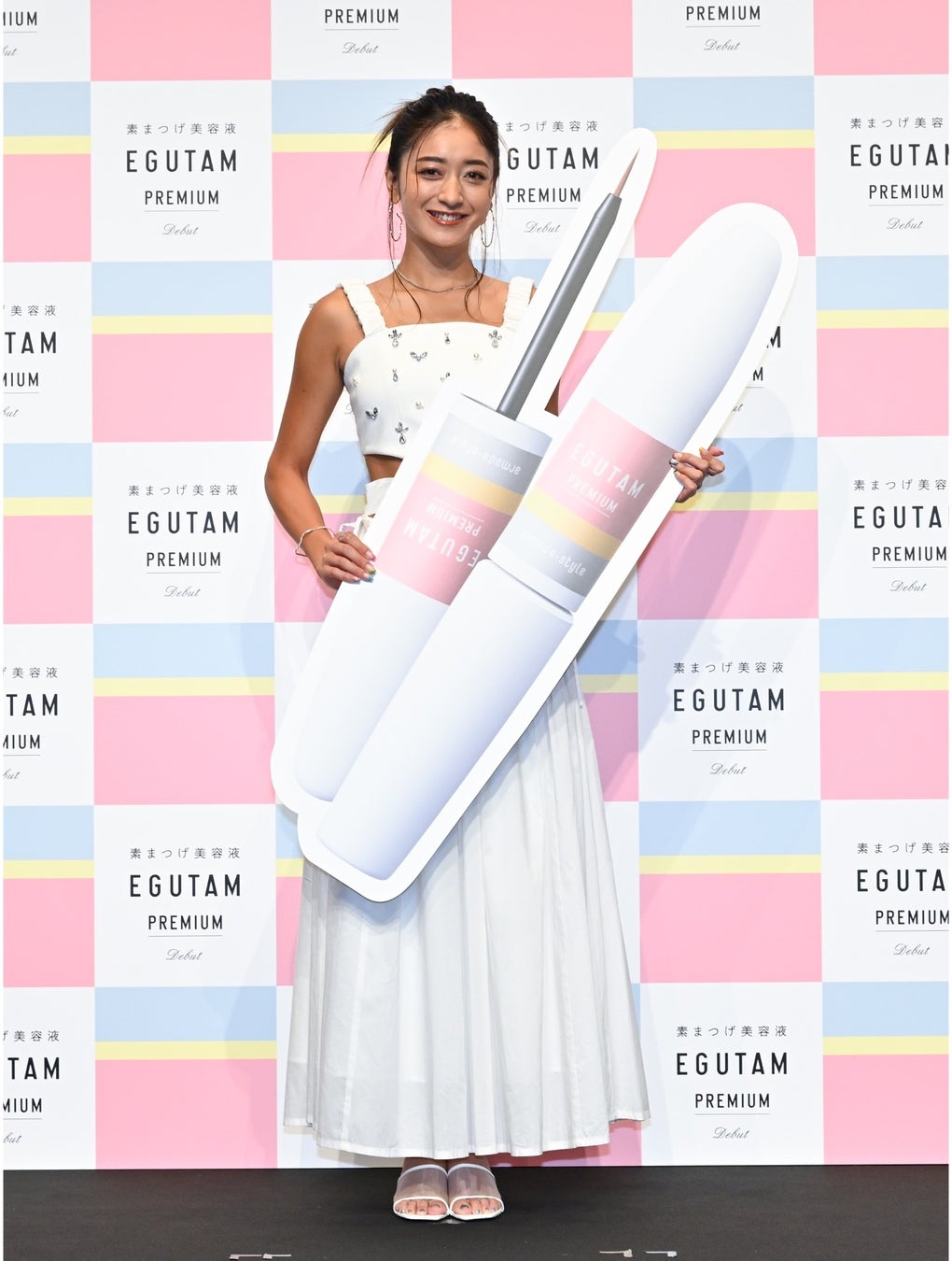 エグータム シリーズの1日アンバサダーとして、みちょぱこと、池田美優さんが登場。「今日はマスカラで長さとボリュームを出して“素まつげ”を意識したメイクです!実は、25歳を機につけまつげを卒業したんです。同時にまつ育も頑張ってきましたが、エグータム プレミアムを事前に使わせていただき、約1・2週間でまつげの成長を実感しました。」と、さっそく商品の魅力をアピール。今年3月にハワイ、そして4月に京都と素敵な挙式が話題になったみちょぱさん。結婚式に向けて美容で何か特別に取り組んだことはありますか?との質問には、「週1回パーソナルジムに通い、日頃から鍛えているので焦って特別何かしたわけではないですが、背中が大きく開いたドレスだったので背中のケアをしたくらいです。美容も日々の積み重ねが大切ですね。」とコメント。ストイックなマインドに対し聞かれると「変にプライドが高いんだと思います。なめられたくないし、周りに何も言わせないくらいになりたいという思いがあって、そのために日々頑張ってかっこいい姿でいたい。」と自身のこだわりを語りました。