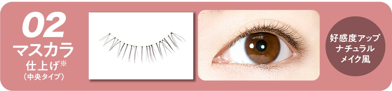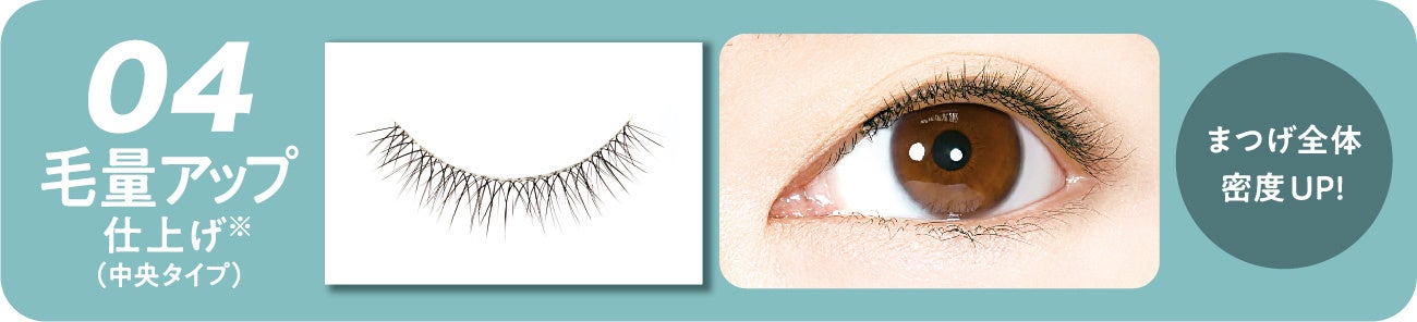 まつげ全体の密度をアップし、自然なアイライン効果があるデザイン。中央タイプ。