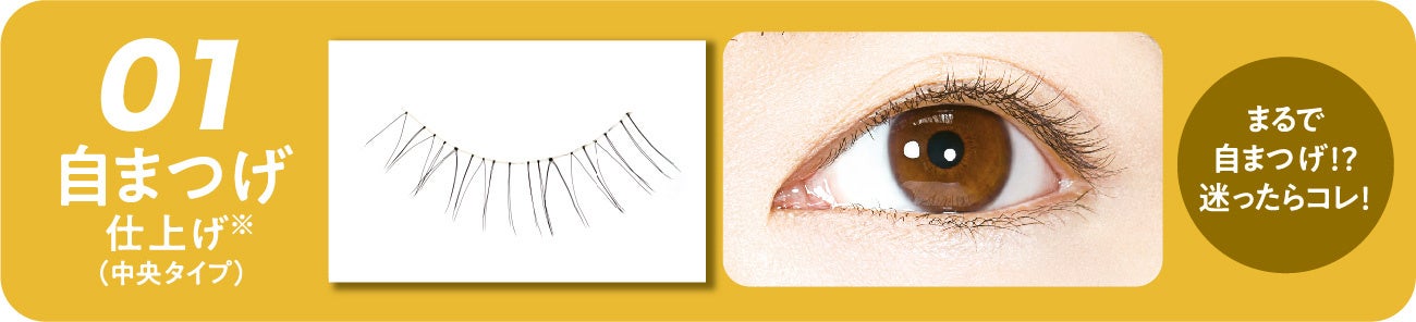 ほどよく自然な毛束が自まつげと錯覚するほどのナチュラルなデザイン。中央タイプ。