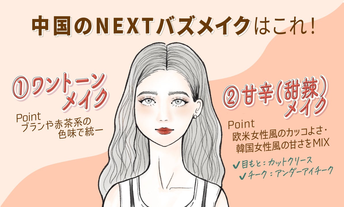 日本ではこの一年ほど大きなメイクトレンドがありませんでしたが、中国のNEXTバズとして有力な「甘辛メイク」や「ブラウンカラー」が、久しぶりの大きなメイクトレンドとなることに期待。
