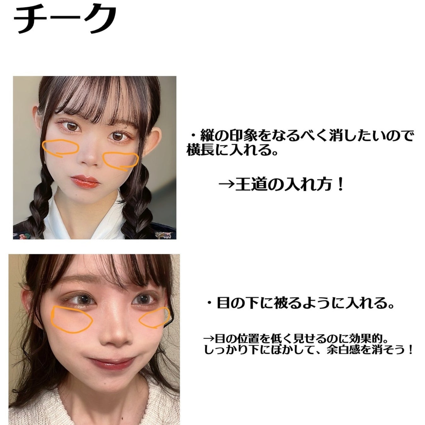 特にチェック必須なチークのトピックは、“アンダーアイチーク”という目の下の高めの位置に横長に入れるメイク方法です。