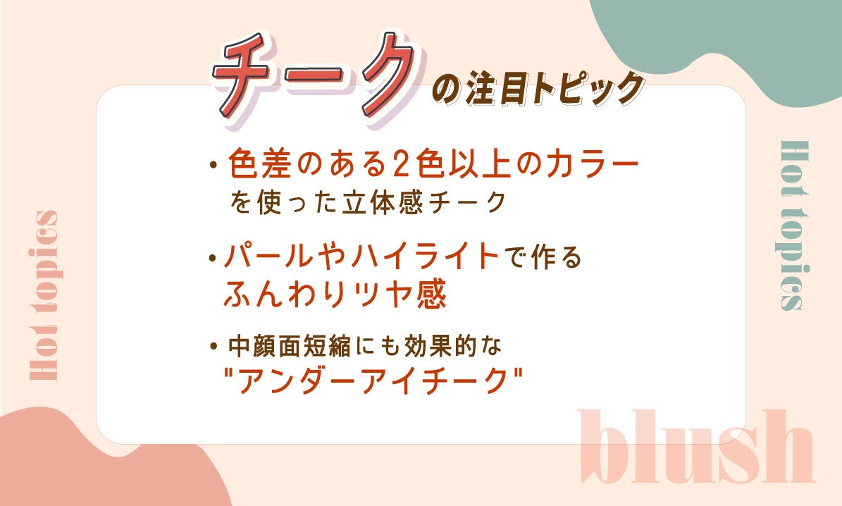 そのような傾向から今季は、チークがメイクのポイントとなるのではないでしょうか。
