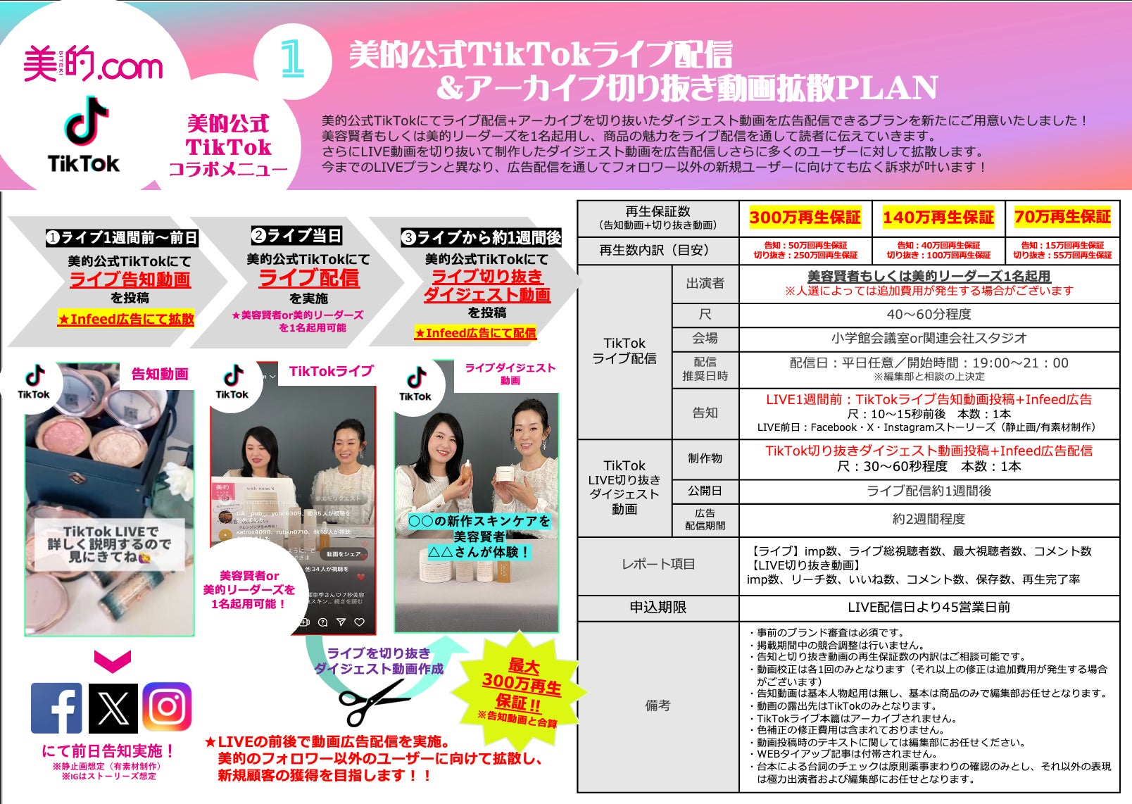 ■『美的』TikTokライブ配信&動画拡散広告メニュー