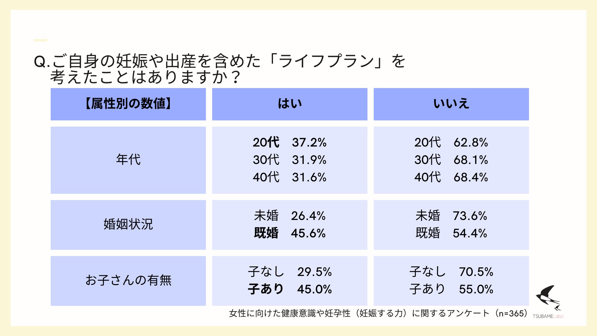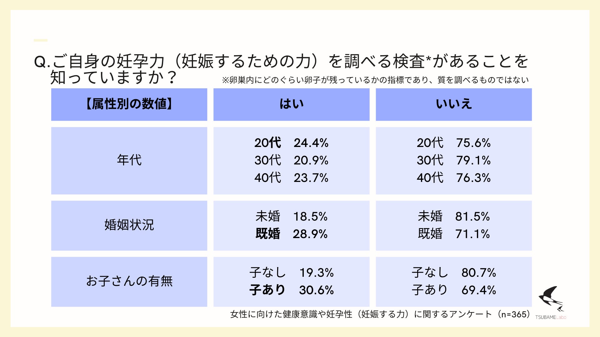 つばめLaboリサーチ:一般女性365名に対して自身の健康と妊孕力に関する意識を調査しました!