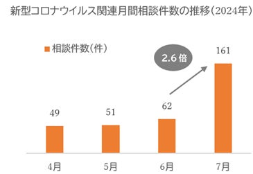 2024年7月「みんなの家庭の医学」の健康相談に寄せられる新型コロナウイルス感染症に関連する相談件数が前月比約2.6倍に増加。