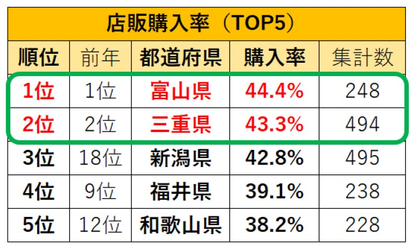 店販購入率は2年連続で、1位は富山県、2位は三重県。