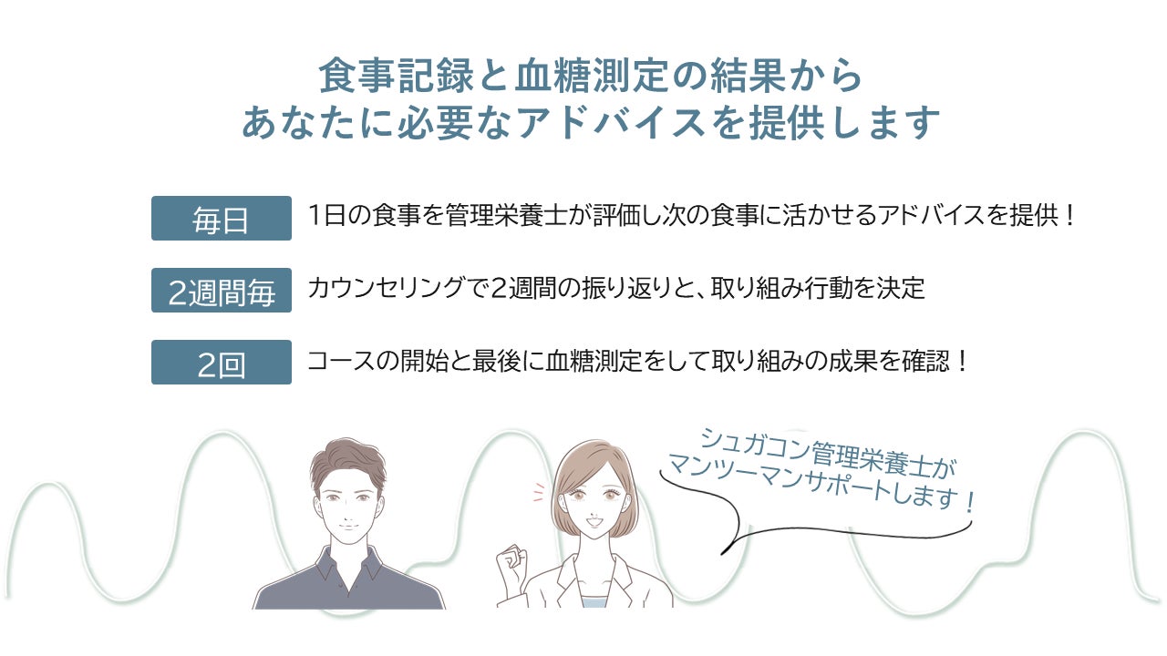 血糖データに基づく食事アドバイスで、自分では気づかない食事の癖を修正していきます。