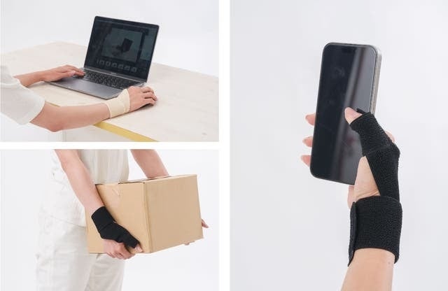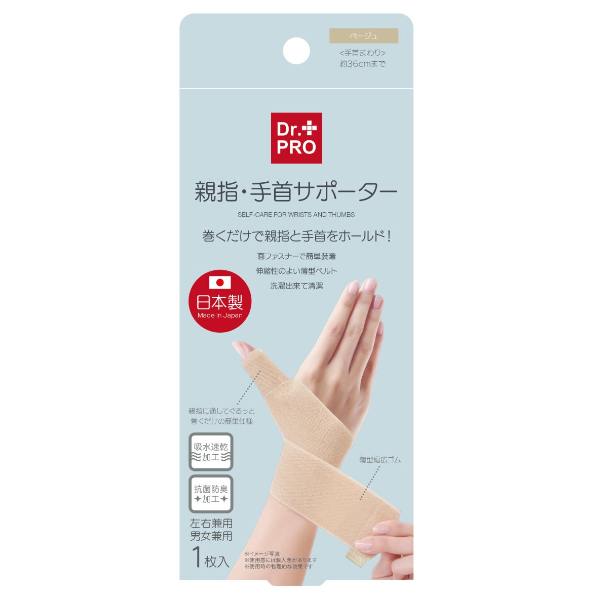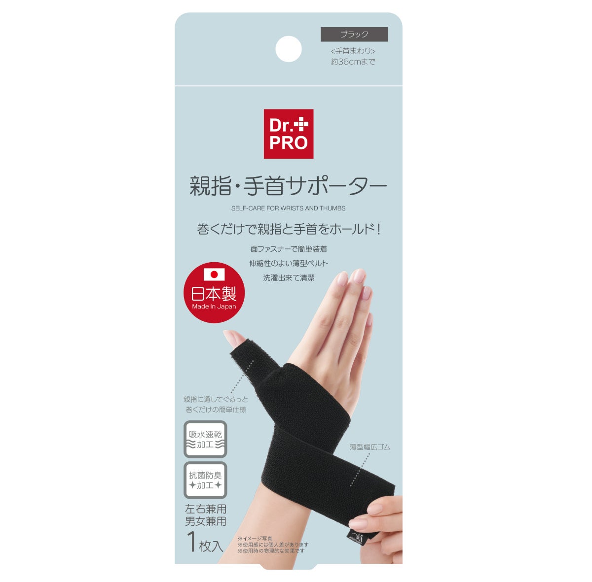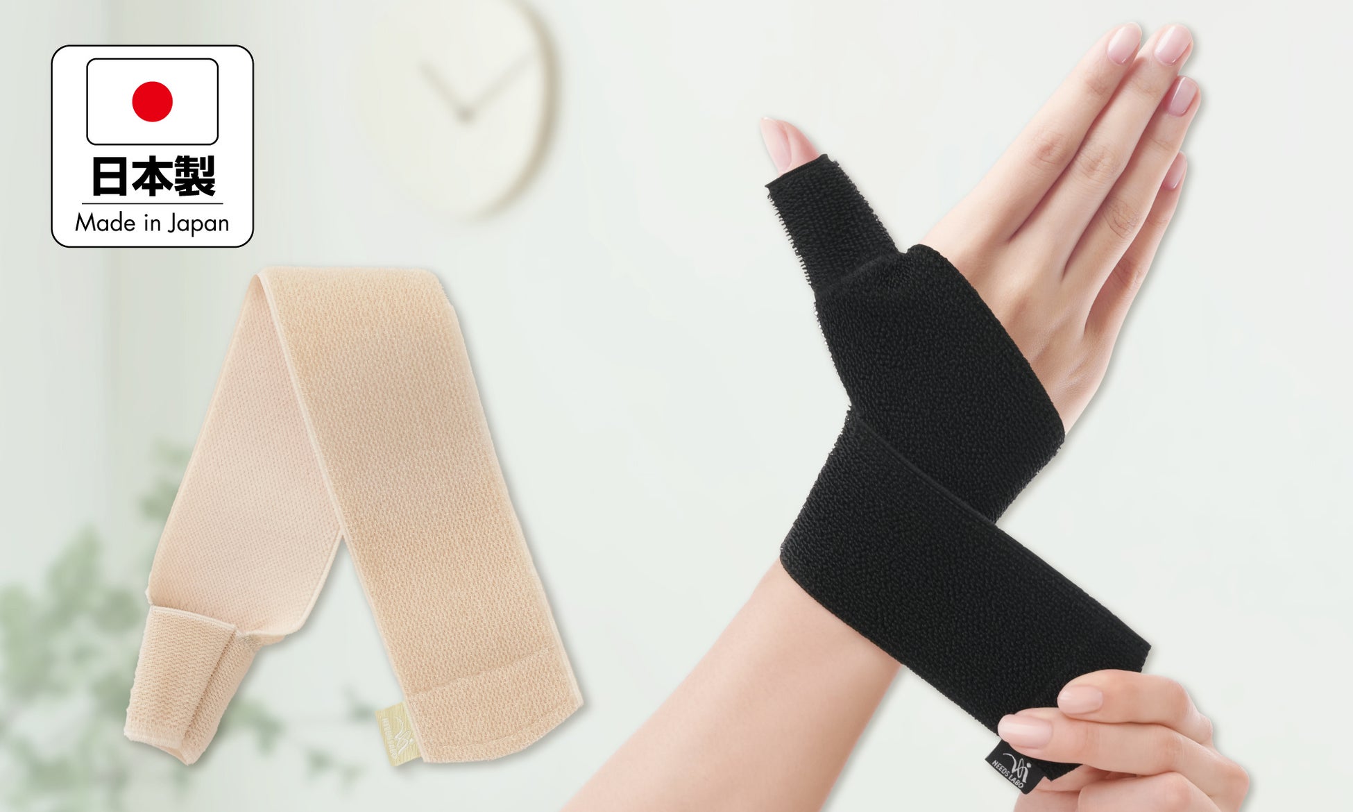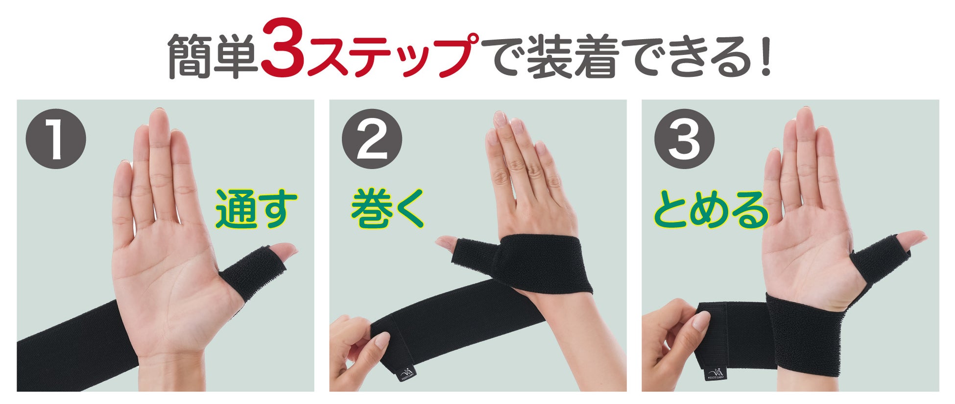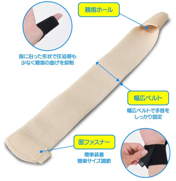 手首だけでなく、親指も合わせて固定することで可動域を制限し、負担をしっかり軽減します。