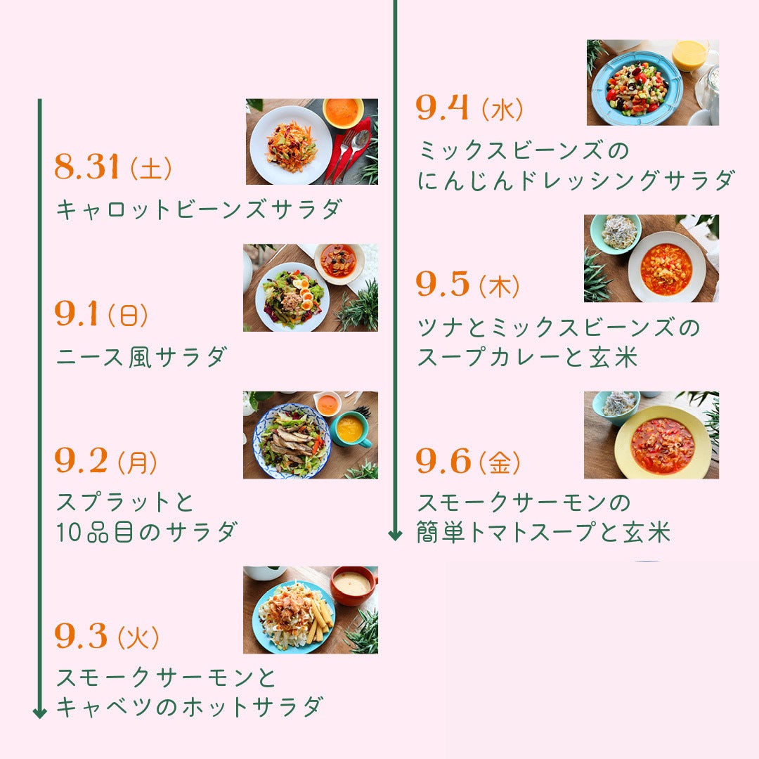 VEGE WEEKに参加して、献立を考える悩みから解放され、生活習慣を見直すスペシャルな1週間を私たちと一緒に過ごしましょう!