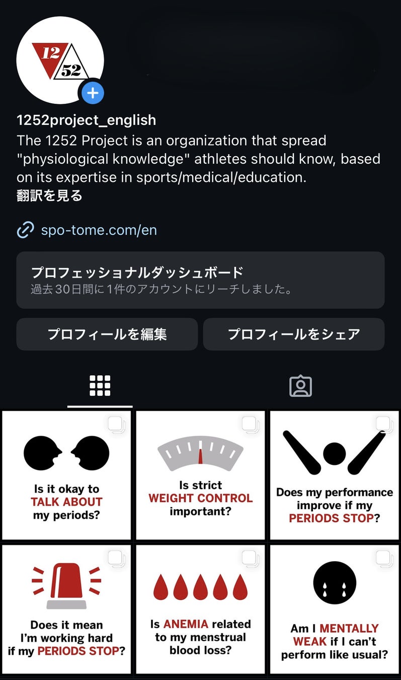 1252プロジェクトが、Instagramで、国内向けに発信していた、女子アスリートが知っておくべき「生理の知識」を、海外向けに発信。