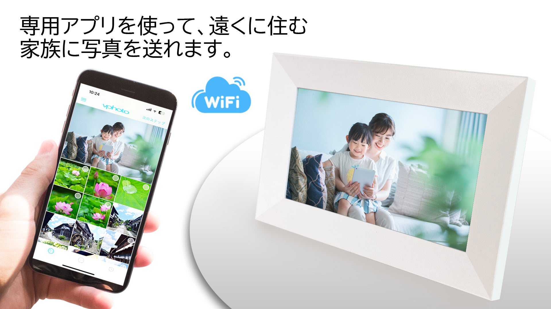 アプリやメールから、遠く離れた場所にいる家族や友人からの写真が届きます。